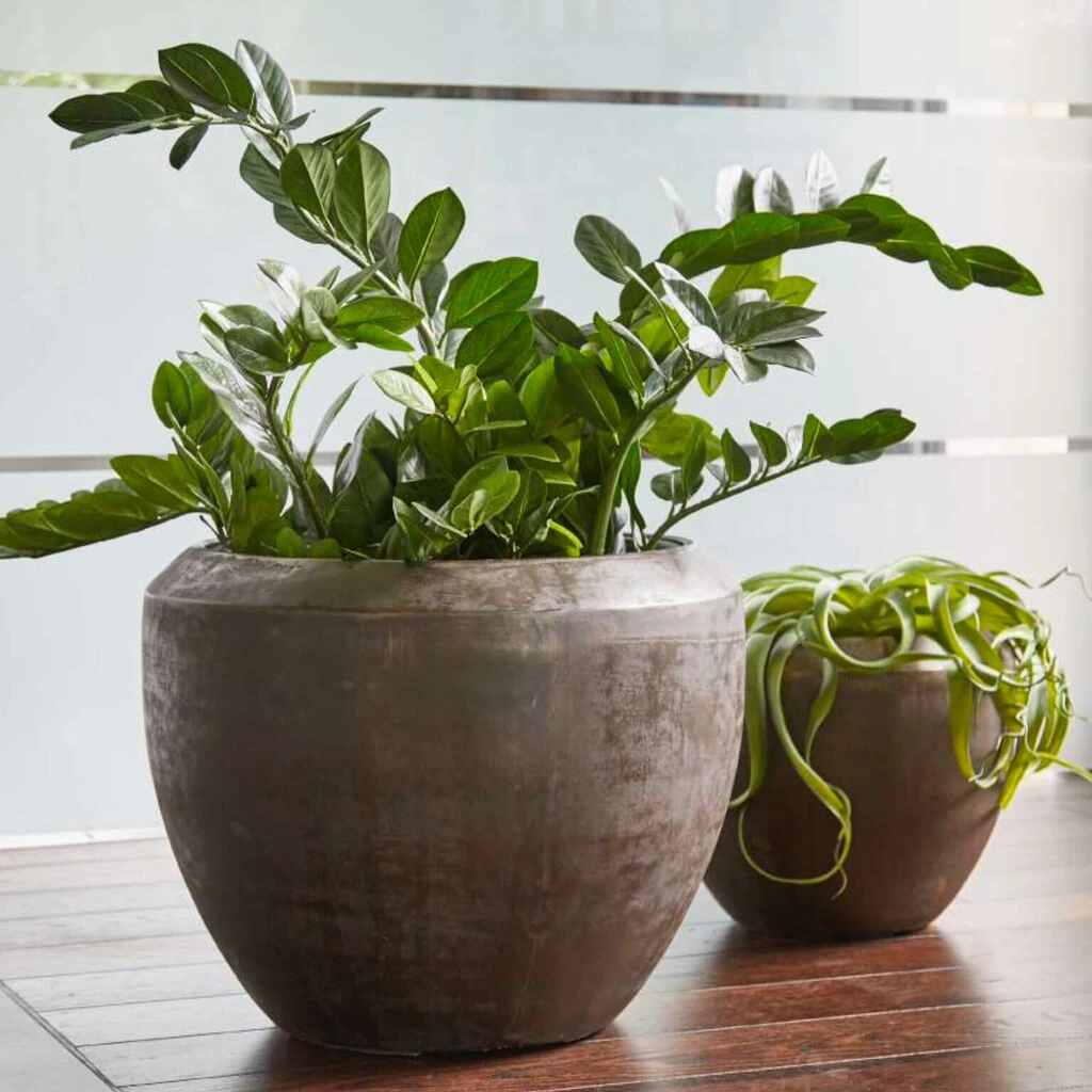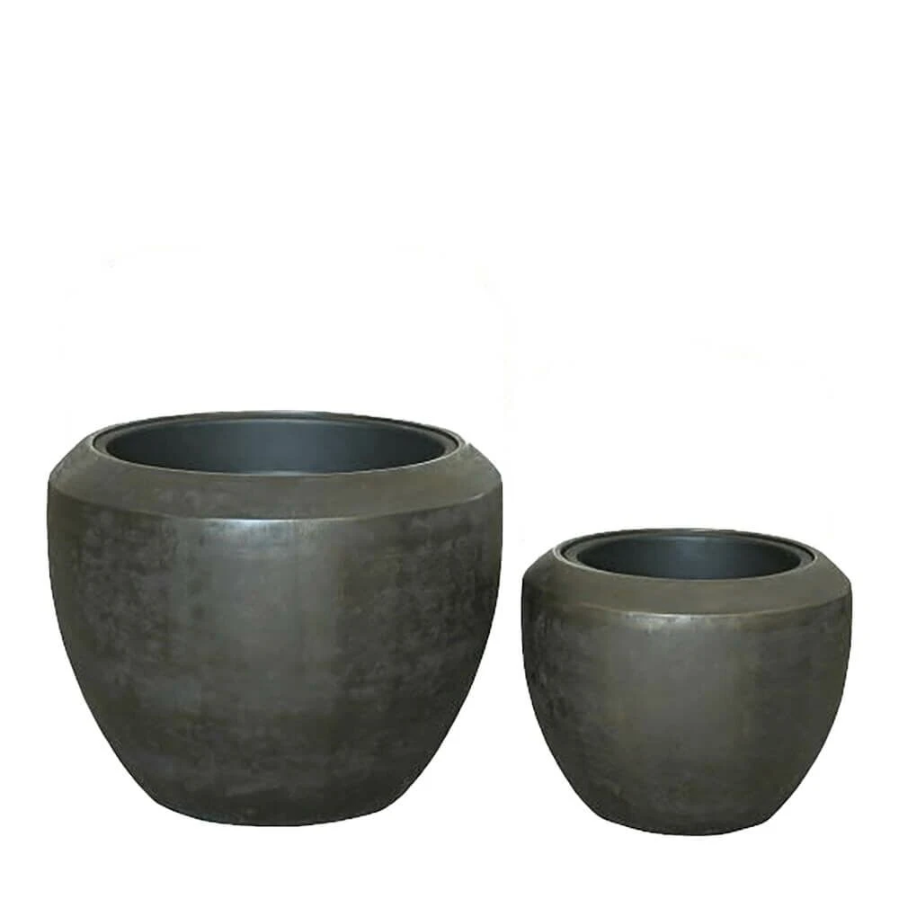 2er Set Indoor Pflanzkübel Mit Einsatz – Polystone – Braun – Feven