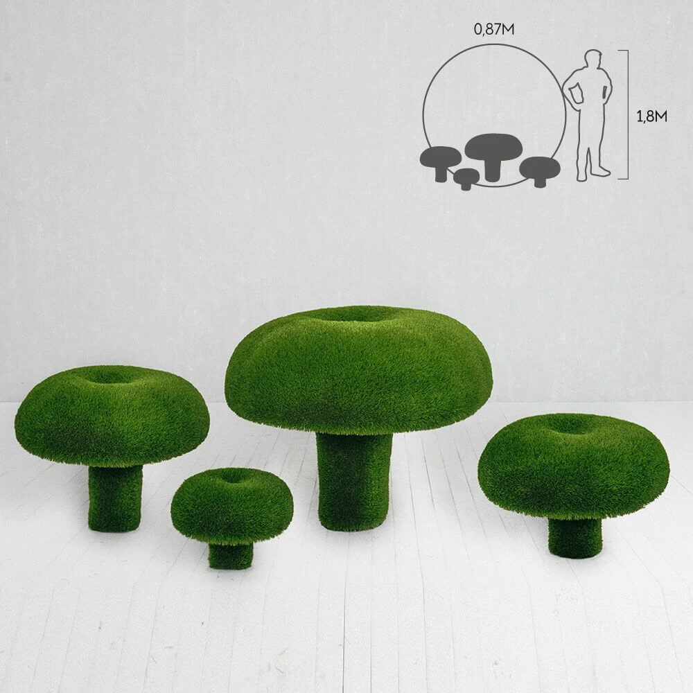 Alle Figuren entstehen als 3D-Modell am Computer. Anschließend wird der Rahmen aus Glasfaserkunststoff hergestellt und von Hand mit Kunstrasen beklebt. Jede Skulptur ist somit ein individuelles Unikat. Dank des Glasfaser Rahmens sind die Topiaries besonders leicht, stoßfest und langlebig – außerdem rostfrei, korrosions- sowie temperatur- und UV-beständig. Es sind keine weiteren Pflegemaßnahmen nötig. Die Gewichtsbeschränkung für die Formschnittfiguren liegt zwischen 30 bis 250kg. Wichtig ist, dass die Skulpturen weit entfernt von Feuerstellen aufgestellt werden.