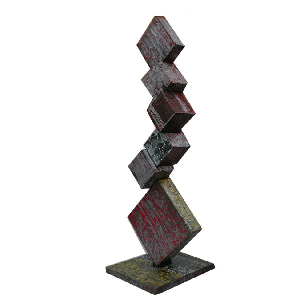 Ein Künstler fertigt im Pop Art Stil die Dekofigur aus recycelten Ölfässern an. Jede Upcycling Figur mit gestapelten Quadraten und Quadern ist ein Unikat. Die Farben können durch die individuelle Verarbeitung der Ölfässer vom Musterbild abweichen. Die Figur sollte einen geschützten Platz auf der Terrasse oder im Haus finden.