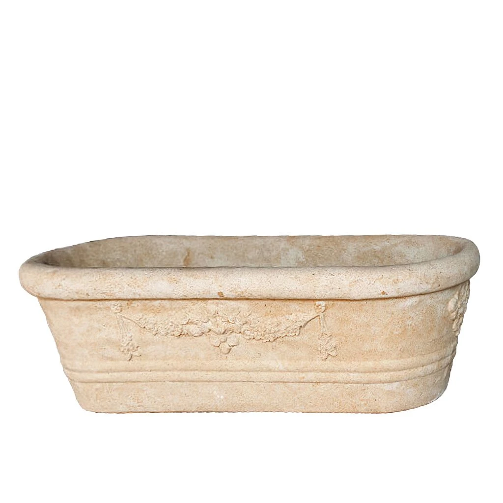 Die Kollektion Dresdener Steinmanufaktur arbeitet mit dem robusten Material Sand-Steinguss. Dieser ist zumeist ein Gemisch aus Zement, Sand und Kalkstein sowie Zuschlagstoffe, Wasser und Farbpigmente, welches anschließend in Form gegossen wird. Schließlich wird die Gartendekoration per Hand weiter ausgearbeitet. Auch als Zement- oder Betonguss bezeichnet, ist der Kunststein insbesondere durch Witterungsbeständigkeit und Langlebigkeit gekennzeichnet.