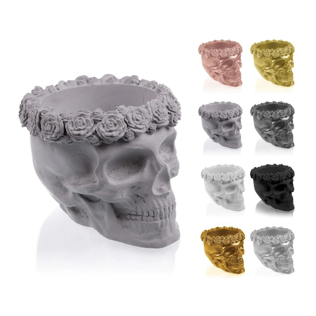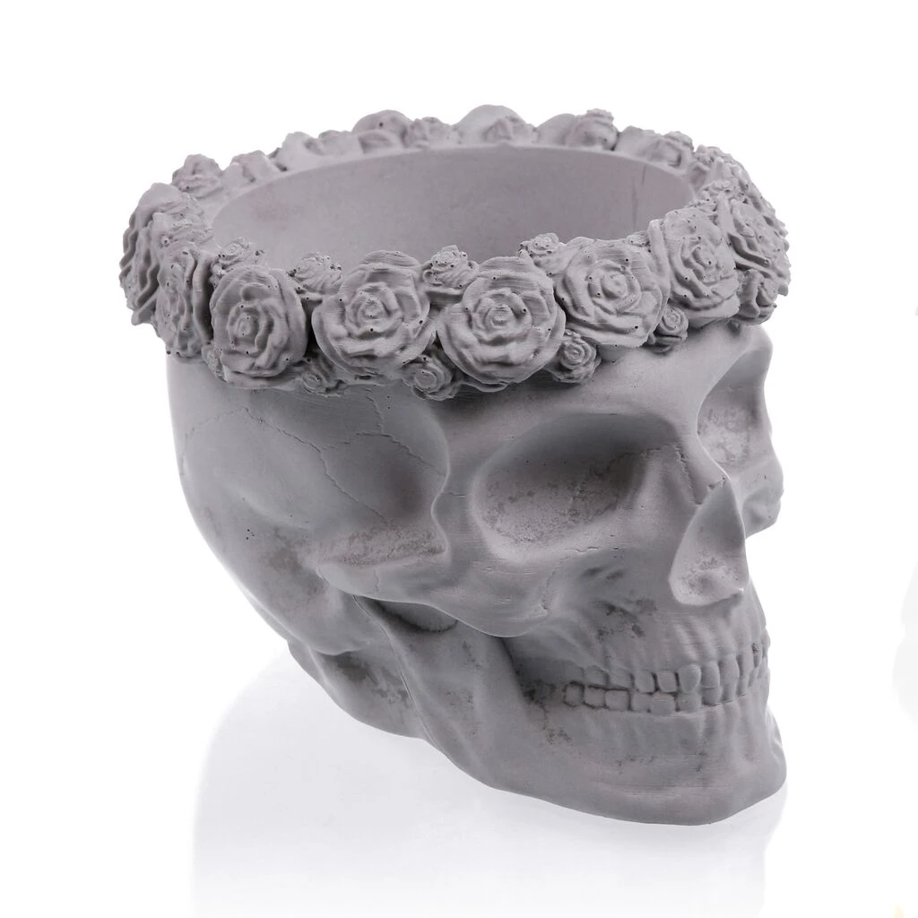 Einzigartiger Pflanztopf Aus Beton – Totenschädel Mit Rosen – Gangain