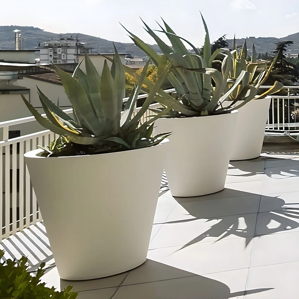 Die modernen Pflanzgefäße werden liebevoll vom Designer entwickelt und in Handarbeit aus Architekturbeton gefertigt. Jedes Produkt ist eine individuelle Sonderanfertigung und kann in Größe, Farbe sowie Design verändert werden. Der zertifizierte Beton ist speziell für die Übertöpfe hergestellt und besticht mit einer hohen Robustheit gegenüber Frost, UV-Strahlung und Nässe. Neben der dargestellen Farbvariante sind weitere Farben mit einer matten oder glänzenden Optik möglich. Bei den Farben handelt es sich um zertifizierte Lacke. Für ein unverbindliches Angebot benötigen wir folgende Angaben: Größe, Farbe, PLZ des Lieferortes.