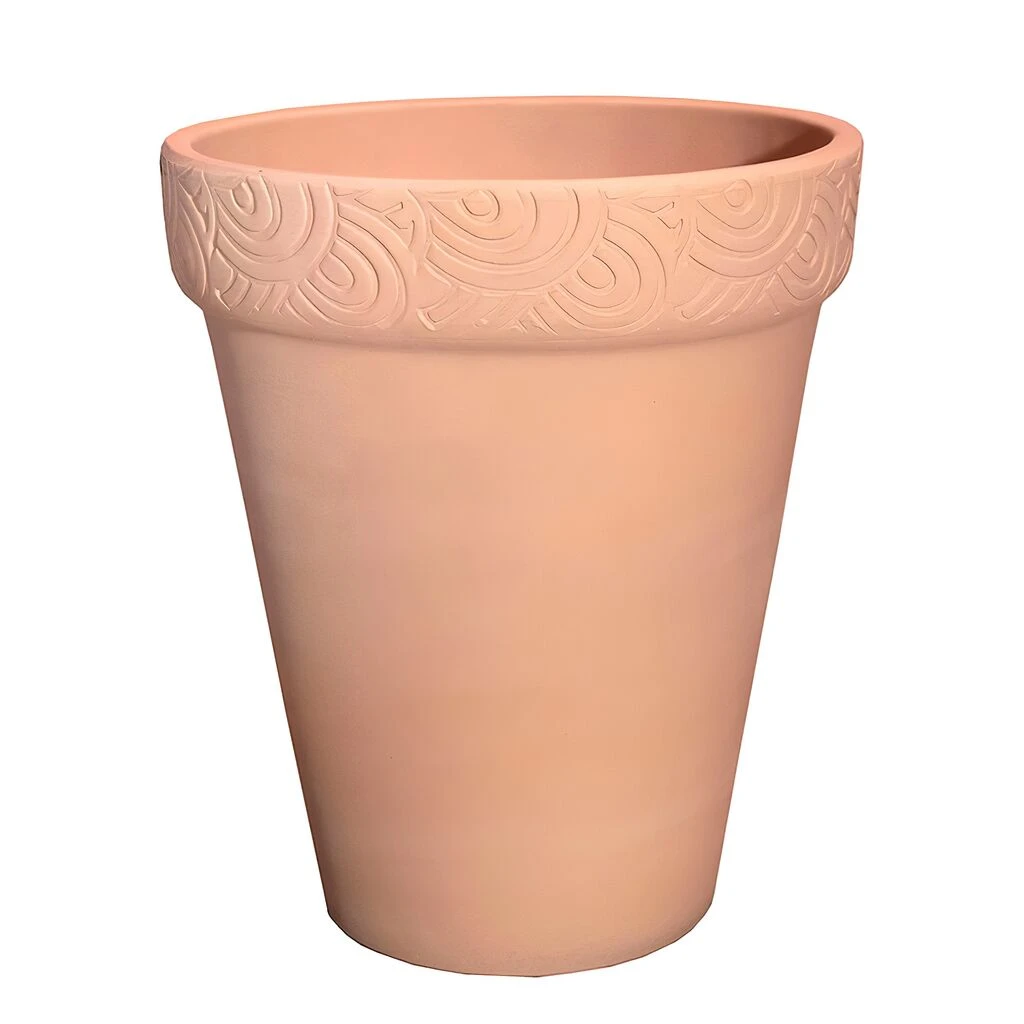 Natürliche Rohstoffe, gebranntes und hochwertiges heimisches Steinzeug kombiniert mit traditioneller Handarbeit aus Deutschland: Diese modernen Pflanzgefäße sind nahezu unverwüstlich und können mindestens 80 Jahre lang im Freien verwendet werden. Alle Blumentöpfe aus dieser Kollektion verfügen standardmäßig über ein Ablaufloch im Boden – so entsteht garantiert keine Staunässe. Diese Pflanztöpfe und Blumenkübel aus bestem Steingut in Top-Qualität können Sie jetzt einfach und sicher online ab Werk kaufen. Ab sofort sind die Produkte in vielen Varianten & Farbvariationen lieferbar. Ob moderne Gartenmöbel oder klassische Gartendekoration wie z.B. ein Gartenbrunnen oder eine hochwertige Skulptur – diese zeitlosen Designs fügen sich hervorragend in Ihre Gartengestaltung ein. Auf Wunsch liefern wir auch individuelle Modelle, Formen & Sondergrößen nach Zeichnung. Der Pflanztopf ist am oberen Rand mit einem schönen Ornamentband verziert und zaubert südländischen Flair in Ihren Garten.