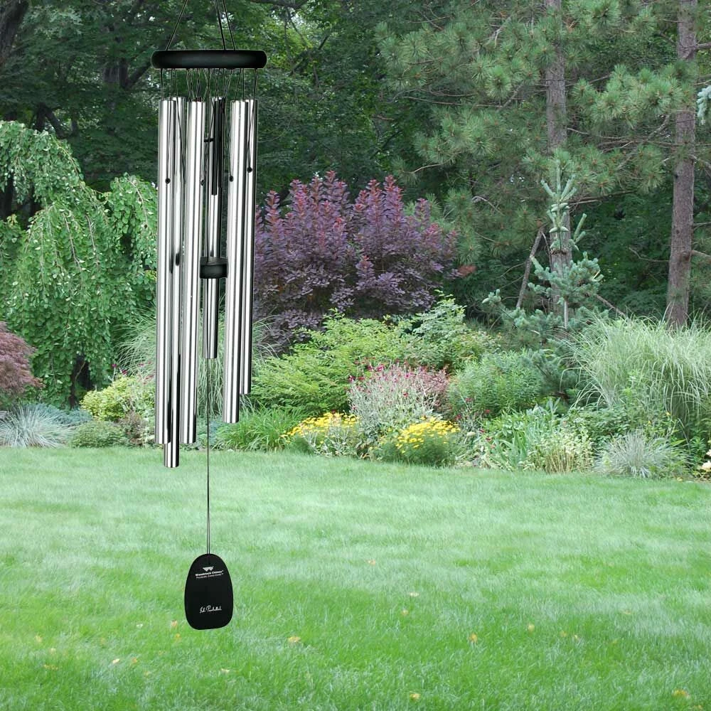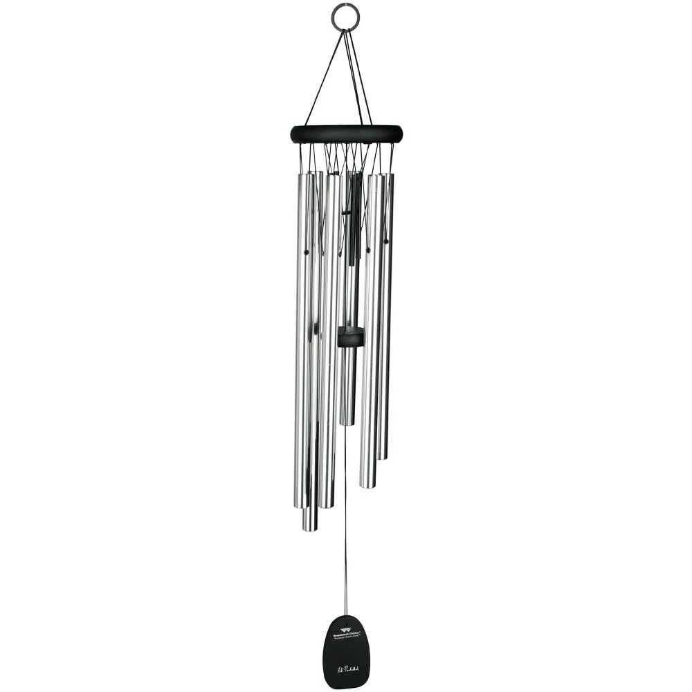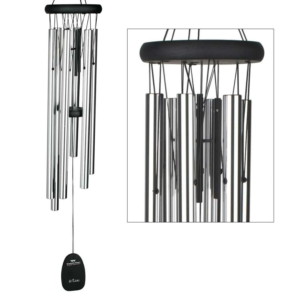 Das Klang Windspiel ‚Pachelbel Canon Chime‘ erinnert an die sanfte, sich wiederholende Melodie des berühmten Kanons von Johann Pachelbel. Die Besonderheit bei diesem Klangspiel liegt dabei in den vier kleinen schwarzen Klangstäben im oberen Drittel, die die unterschiedlichen Tonlagen des Kanons abrunden. Weiterhin besteht das Klangspiel aus schwarzem Eschenholz und 6 silbernen Metall-Röhren. Berühmte Komponisten aus der ganzen Welt inspirieren schon seit über 3 Jahrzehnten die Klangspiele von Woodstock. So erklingen Melodien die bereits schon Millionen von Menschen bezaubert und inspiriert haben.