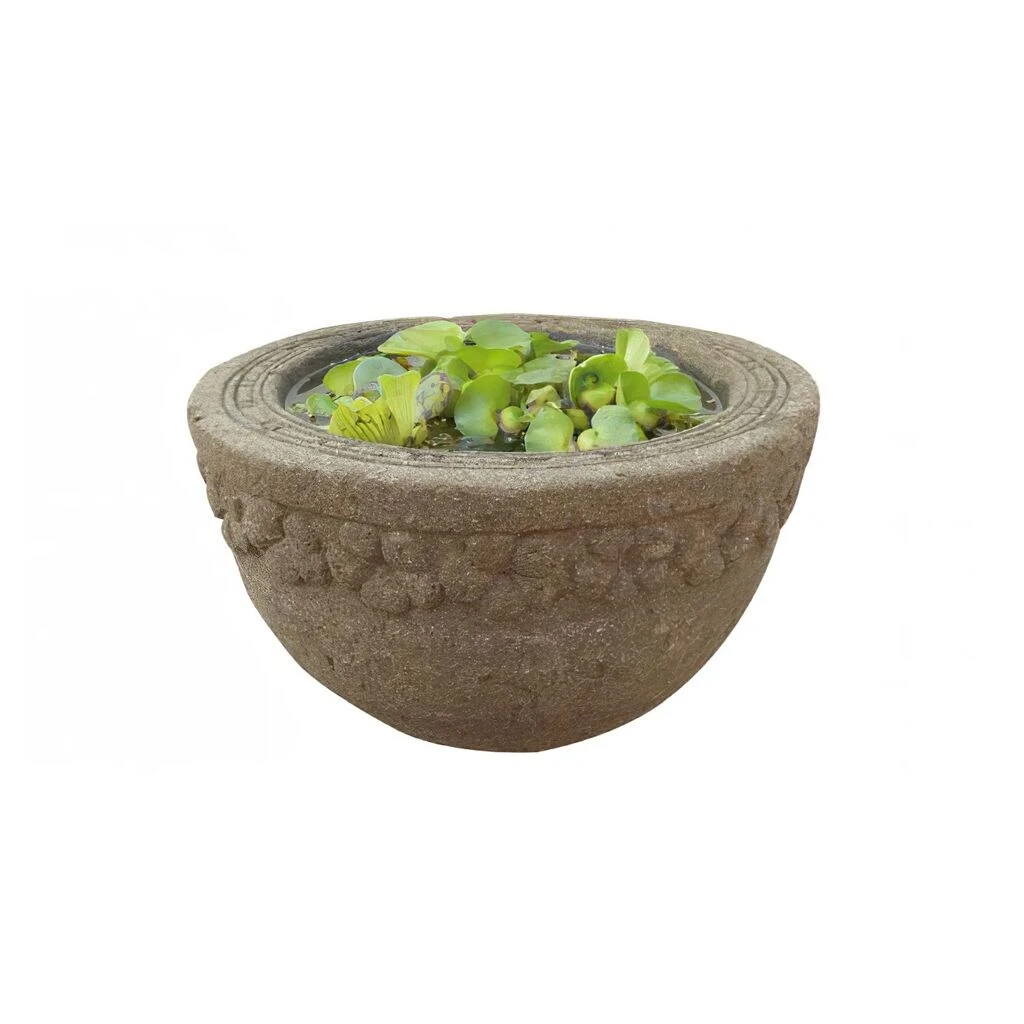 Diese kleine Pflanzschale wird aus einem Natur Stein (Basanit) in Handarbeit gefertigt. Bei Basanit handelt es sich um ein frostbeständiges, jedoch nicht tausalzbeständiges Lava-Gestein. Sollte die Steinschale als Wasserschale verwendet werden, muss der Basanit hydophobiert, also mit einem wasserabweisenden Mittel behandelt werden. Um eine Frostbeständigkeit im Winter zu gewährleisten sollten Sie Ihre Pflanztröge mit einem Abfluss versehen. Dank der wunderbaren Blumenmuster Verzierung wird das Pflanzgefäß garantiert ein besonderes Highlight in Ihrem Garten sein.