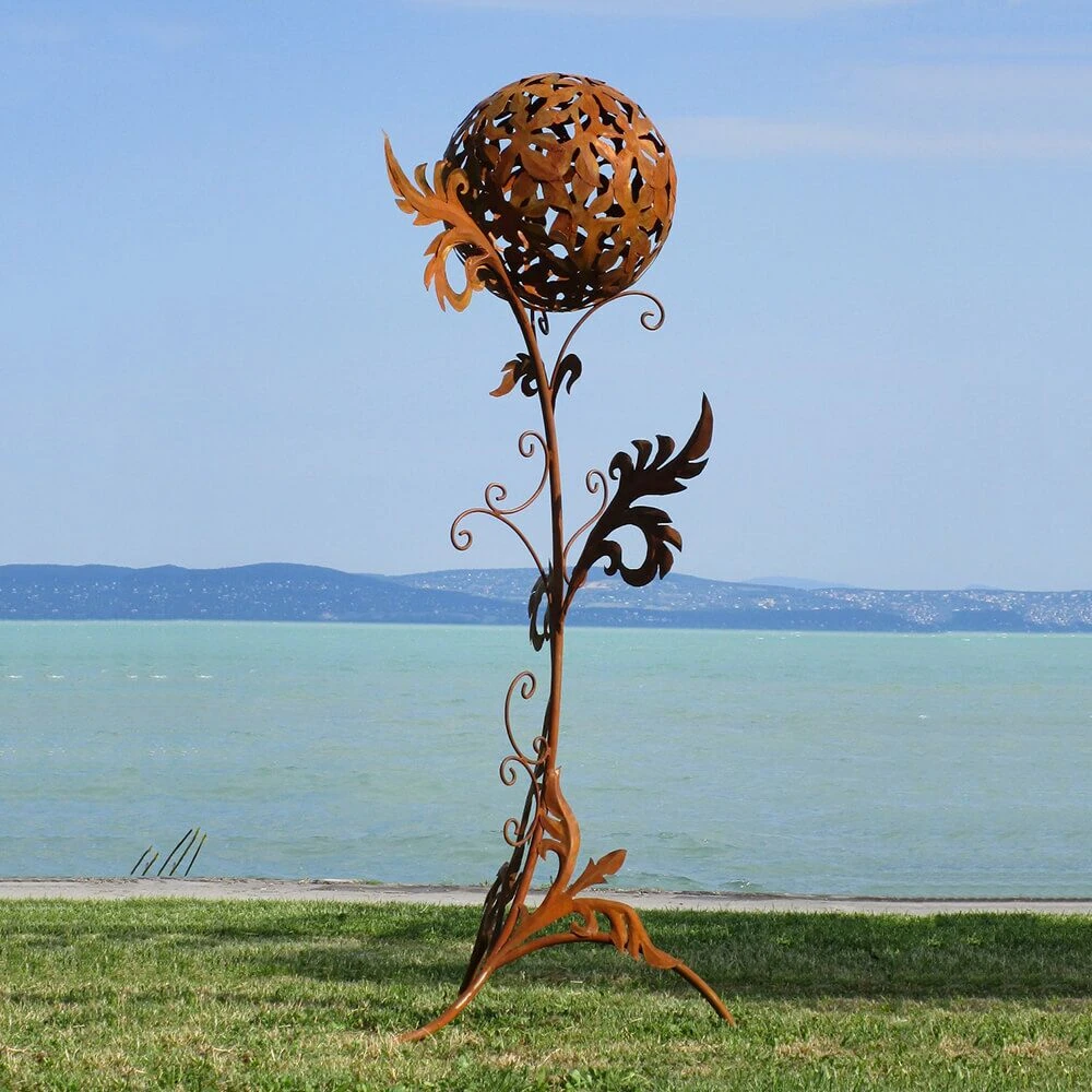 Bei den außergewöhnlichen Skulpturen unseres ungarischen Künstlers handelt es sich um handwerklich hergestellte Unikate. Die Bearbeitung erfolgt wahlweise aus nicht rostendem Edelstahl oder aber aus Stahl (St37). Letzterer ist mit einer Säure behandelt und erhält so die attraktive Rost-Patina. Diese rostigen Skulpturen sind mit einer Schutzschicht versehen, um die Lebensdauer (ca. 50 Jahre) zu erhöhen. Nach 50 Jahren können die Gartenskulpturen restauriert werden. Die Figuren sind wetter- sowie sturmfest. Der verwendete Stahl hat eine Materialstärke von ca. 0,5-1mm. Die Konstruktion wird mittels Rundeisen und Rohren innen stabilisiert. Befestigungsvorrichtungen für die Bodenmontage sind in Form von Schrauben oder Ösen bauseits berücksichtigt, sodass eine einfache Montage der Skulpturen im Garten erfolgen kann.