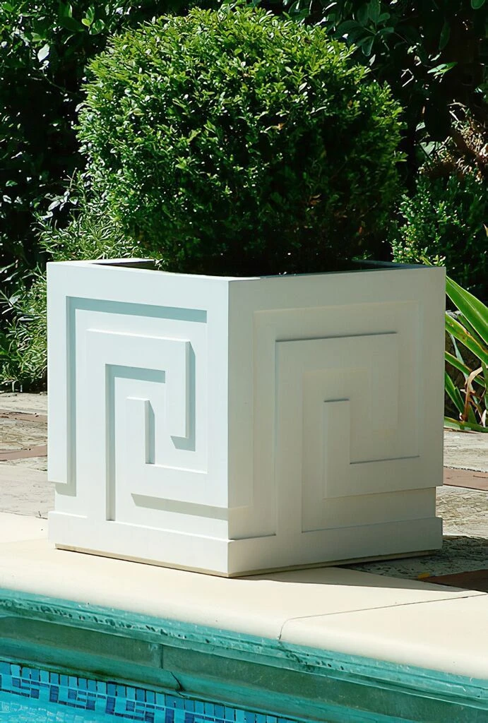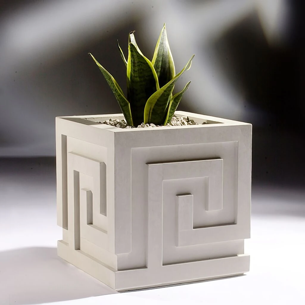 Dieser schön gearbeitete Pflanztopf aus englischem Steinguss eignet sich für Draußen, sowie für den Innenbereich. Auf Grund des hohen Gewichts ist dieses Pflanzgefäß sehr standfest, der Stein ist zudem frostfest und witterungsbeständig, so dass er das ganze Jahr im Freien stehen kann. So müssen Sie sich nie wieder über beschädigte Pflanzen ärgern, diesen Pflanztopf weht kein Sturm um. Der Pflanztrog wird in bester Qualität von Hand bei unseren Fachpartnern in England hergestellt. Wir bieten ausschließlich Pflanztöpfe und Amphoren aus hochwertigen Materialien, so dass Sie viele Jahre Freude an Ihrer Gartendekoration haben werden. Auch beim Design gehen wir keine Kompromisse ein: Das elegante Pflanzgefäß wurde exklusiv von Künstlern und Bildhauern entworfen. Der zeitgenössische quadratische Pflanztopf ist verziert mit modernen architektonischen Linien im Mäander-Stil.