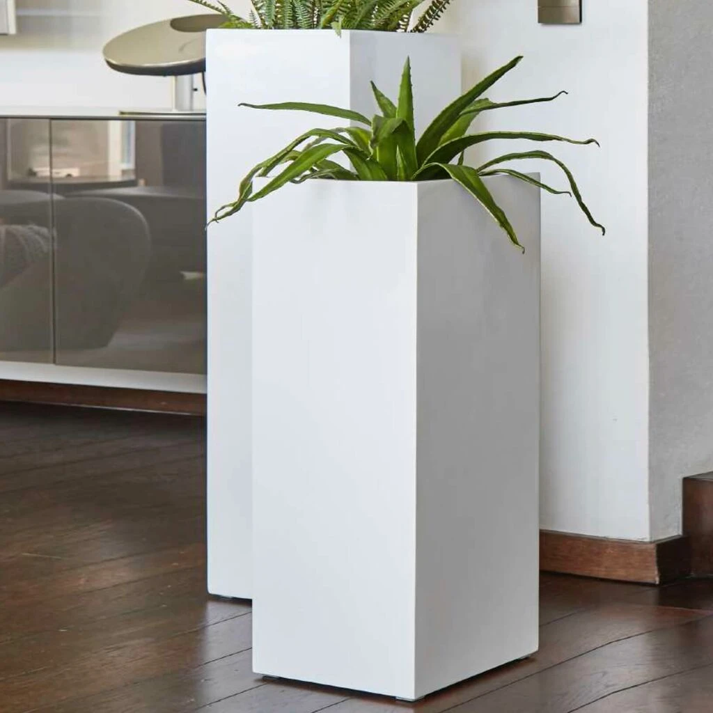 Outdoor Pflanzvase Eckig – Polystone Hochglänzend Weiß – Corciano
