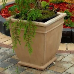 Die Gartenvase im englischen Stil strahlt schlichte Eleganz aus. Gefertigt wird das Pflanzgefäß aus Steinguss in verschiedenen Farben. Der Innendurchmesser beträgt 23cm. Ein Loch für den Wasserabfluss ist vorhanden.