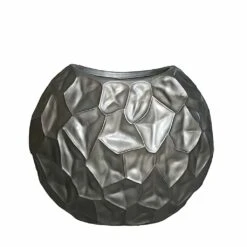 Rundes Keramik Pflanzgefäß Mit Schöner Olivenblatt-Verzierung – Anthrazit – Frostsicher – Olea Niger