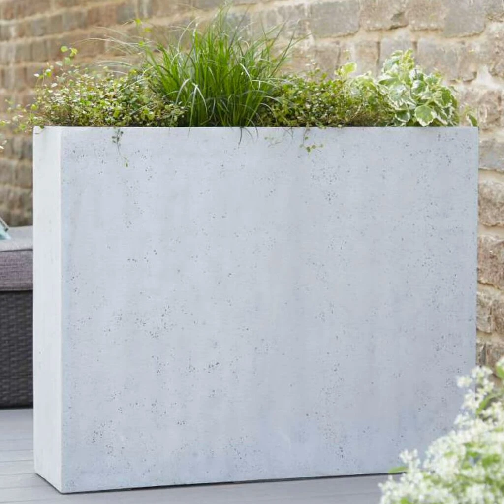 Moderner Raumteiler mit 4 Kunststoff Einsätzen zum Bepflanzen. Gefertigt aus Polystone in Zement Optik ist der Raumteiler ein attraktives Dekoelement für den modernen Garten. Das Element ist wetterfest und UV-beständig.