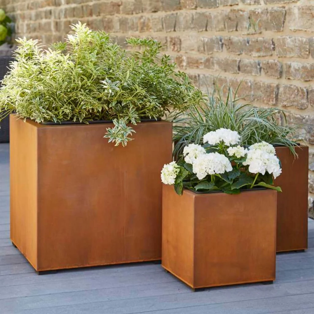Rost Metall Pflanzgefäße 3er Set – Eckig Mit Einsatz – Hilo