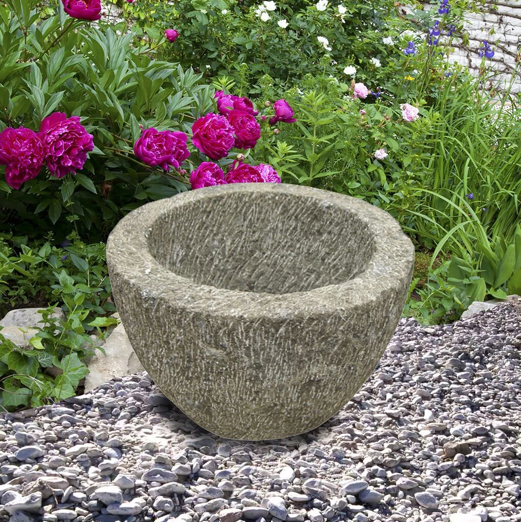 Dieses rustikale Vogelbad aus Naturstein fügt sich harmonisch in jedes Gartenambiente ein und bietet heimischen Vögeln eine willkommene Erfrischung. Unsere Steinschale als Vogeltränke, die auf einem rustikal behauenen Natursteinblock steht, wird in traditioneller Handarbeit aus einem Steinblock gemeißelt, ist widerstandsfähig gegen sämtliche Witterungseinflüsse sowie frostsicher und somit besonders langlebig. Da es ich bei unseren Vogelbädern aus Stein um echte Unikate und Naturprodukte handelt, kann eine von Ihnen in unserem Onlineshop bestelltes Wasserschale als Vogelbad in Struktur und Färbung leicht vom Beispielbild abweichen. Bereichern Sie Ihren Garten mit dieser schönen Vogeltränke aus Naturstein und schaffen Sie einen neuen Blickfang im Außenbereich.