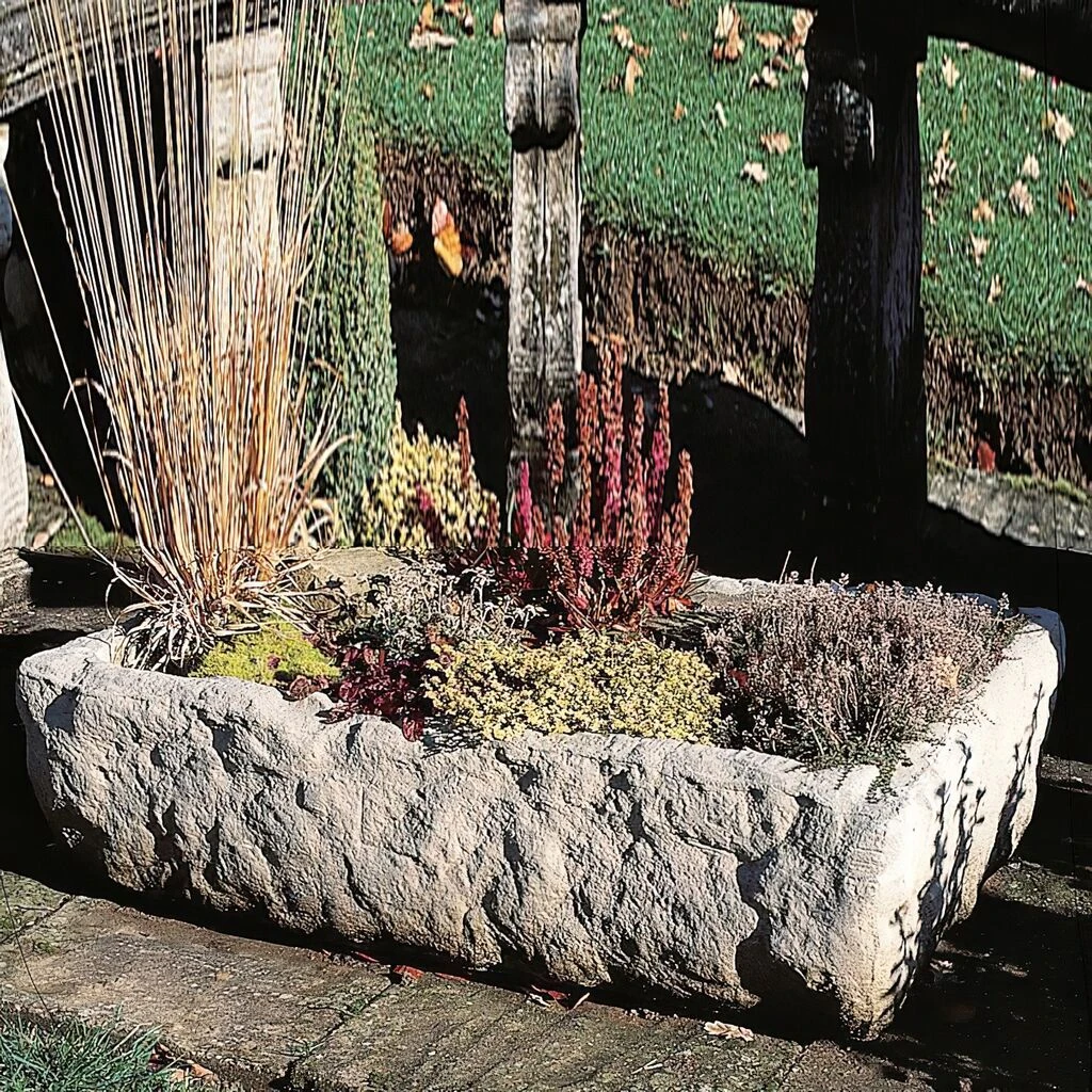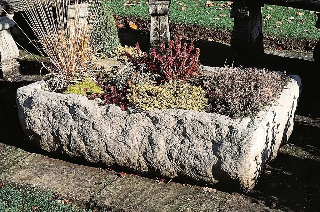 Egal, ob liebevoll bepflanzt oder edel dekoriert, dieser Pflanztrog im alpinen Design kommt überall zur Geltung. Auf Grund seiner praktischen Größe eignet er sich nicht nur für Gärten und Grundstücke jeder Art, er kommt auch auf Terrassen oder im Eingangsbereich gut zur Geltung. Der massive Trog aus edlem Steinguss kann direkt bepflanzt werden. Für die Herstellung verwenden wir nur beste natürliche Materialien und Blumen und Grünpflanzen fühlen sich wohl in diesem außergewöhnlichen Blumentopf. Der Stein, ein hochwertiges Material direkt aus England, schützt das Wurzelwerk vor Hitze im Sommer und verhindert Staunässe. Zudem ist der Pflanztopf wetterfest und frostsicher und kann auch im Winter im Freien verbleiben. Eine außergewöhnliche Dekoidee für den Garten – nicht nur für echte Liebhaber der alpinen Gartengestaltung.
