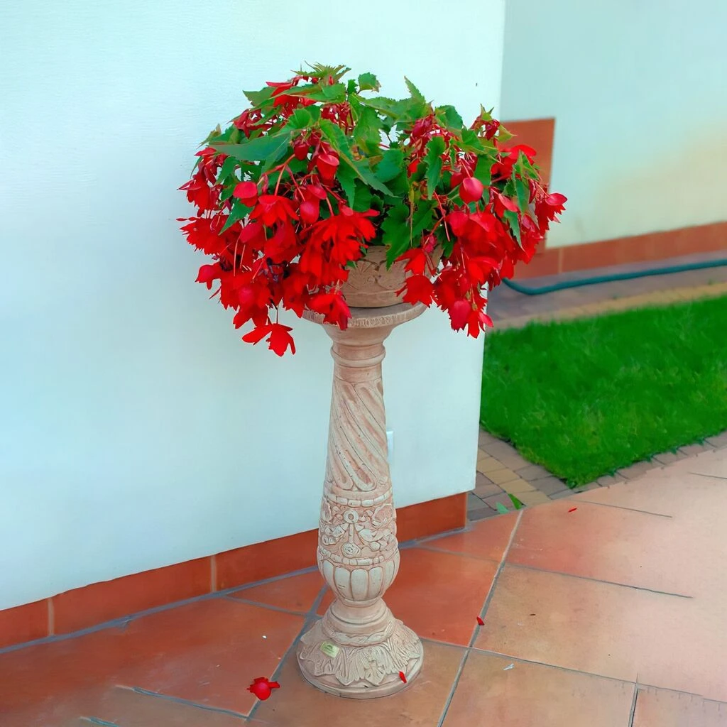 Dieses Set mit Schale und Säule aus Steinguss setzt elegante Akzente im Garten, Vorgarten oder auf der Terrasse. Die Muster der Säule erinnern an ein Design aus dem alten Griechenland während die Pflanzschale mit Muscheln geschmückt ist. Die Kombination ist in verschiedenen Farbpatina erhältlich.