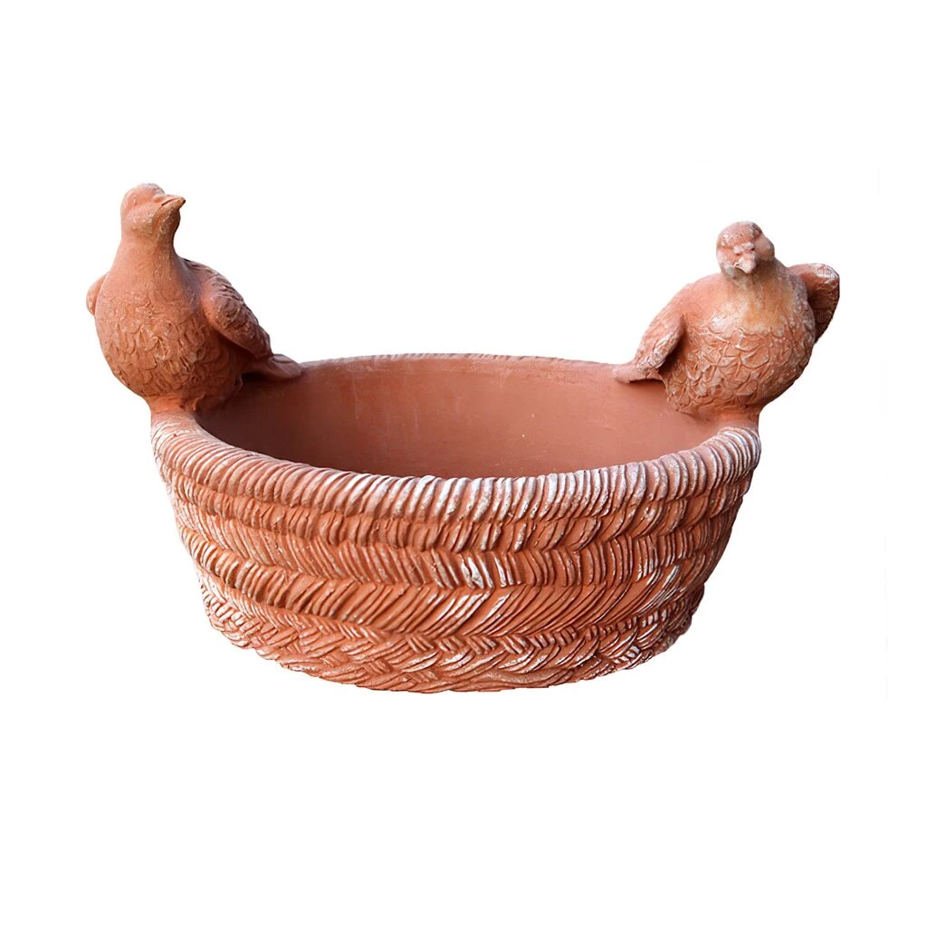 Terrakotta Korbgeflecht – Pflanzgefäß Mit Tauben – Cestino