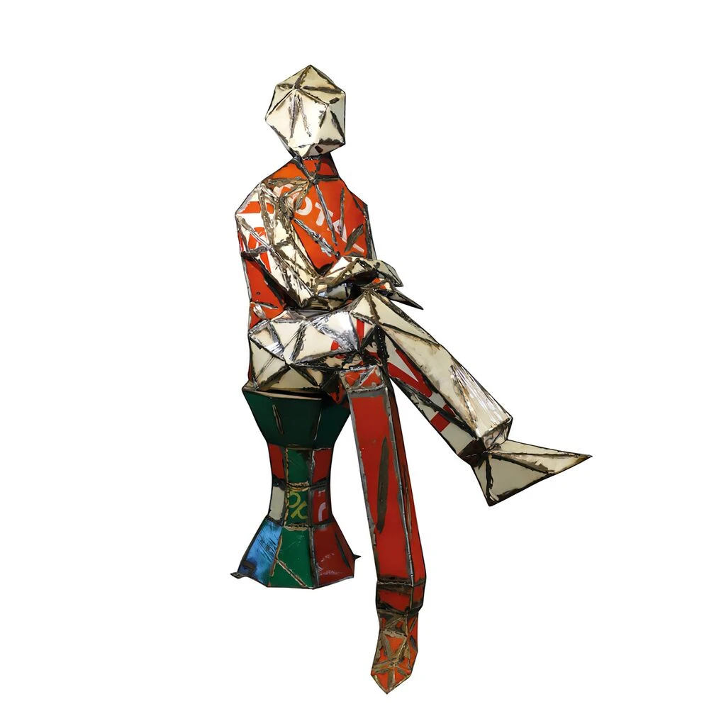 Upcycling Unikat Aus Ölfässern – Sitzende Männer Skulptur – Akoni
