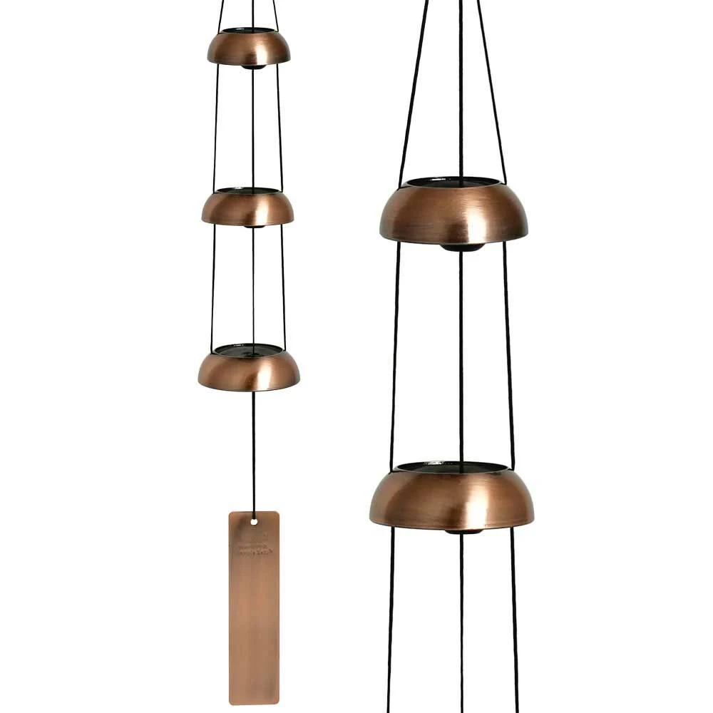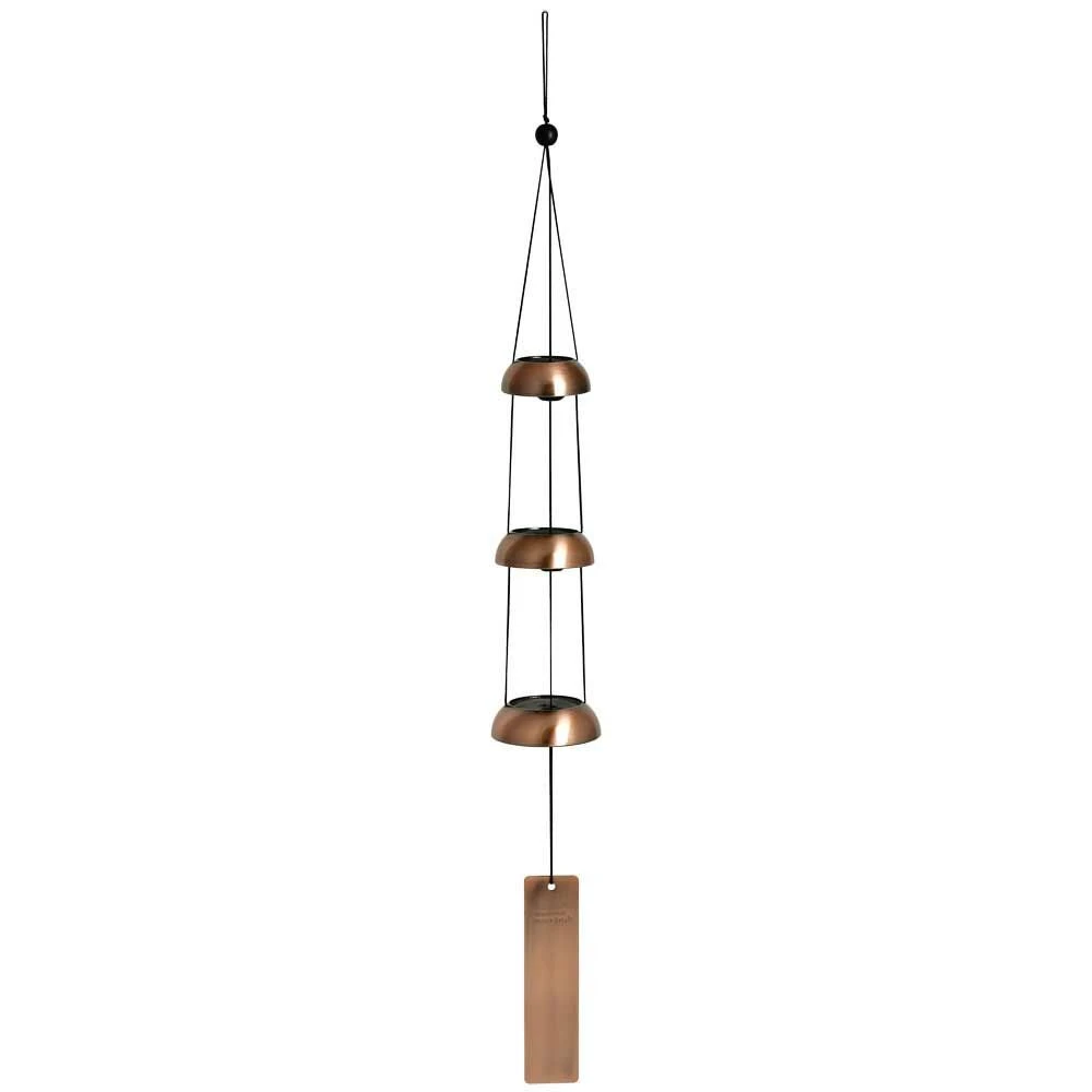 Dieses Windspiel mit Glocken erinnert an alte chinesische Tempel und Häuser. In China werden Glocken aufgehängt um das Böse zu vertreiben und den Wohlstand anzuziehen. Dort beherrschte man als erstes die Kunst, die Klangkörper so zu stimmen, dass sie wunderbare sandte Melodien spielten. Unsere Klangspiele werden in Handarbeit hergestellt und werden Ihnen viele Jahre Freude bereiten. Ob in Kombination mit einer Halterung für den Garten oder im Haus, das Klangspiel aus schwarzen Hartholzkugeln und drei mit Kupfer bedeckten Stahlglocken wird ein absoluter Hingucker sein.