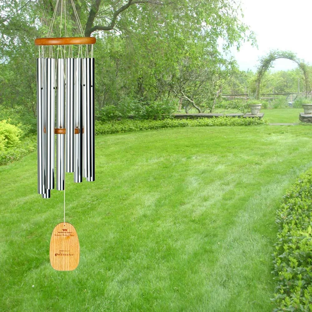 Das Woodstock Klangspiel ‚Wedding Chime‘ wird gerne für Trauungen gewählt. Es ist gestimmt nach Pachelbels Kanon in D. Woodstock wird schon seit mehr als 3 Jahrzehnten von den berühmtesten Komponisten der Welt inspiriert. So erklingen mit unseren Windspielen Melodien, die schon viele Millionen Menschen inspiriert und bezaubert haben. Das Windspiel besteht aus Eschenholz und 8 silbernen Metall-Röhren und wurde in handarbeit gefertigt.