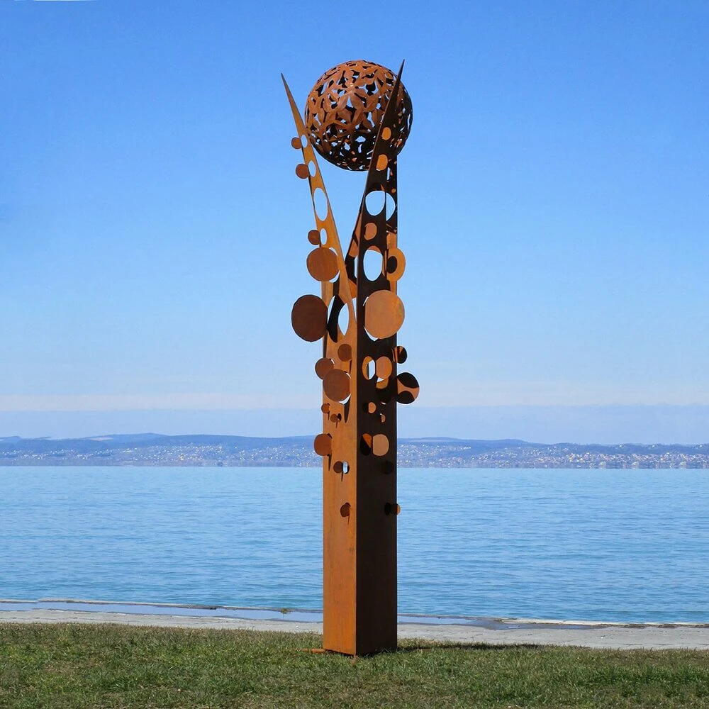 Bei den außergewöhnlichen Skulpturen unseres ungarischen Künstlers handelt es sich um handwerklich hergestellte Unikate. Die Bearbeitung erfolgt wahlweise aus nicht rostendem Edelstahl oder aber aus Stahl (St37). Letzterer ist mit einer Säure behandelt und erhält so die attraktive Rost-Patina. Diese rostigen Skulpturen sind mit einer Schutzschicht versehen, um die Lebensdauer (ca. 50 Jahre) zu erhöhen. Nach 50 Jahren können die Gartenskulpturen restauriert werden. Die Figuren sind wetter- sowie sturmfest. Der verwendete Stahl hat eine Materialstärke von ca. 0,5-1mm. Die Konstruktion wird mittels Rundeisen und Rohren innen stabilisiert. Befestigungsvorrichtungen für die Bodenmontage sind in Form von Schrauben oder Ösen bauseits berücksichtigt, sodass eine einfache Montage der Skulpturen im Garten erfolgen kann.